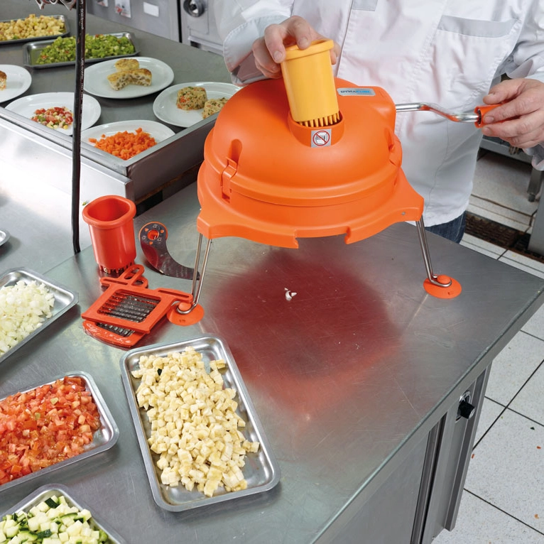 Der Dynacube bietet eine Vielzahl von Schneidoptionen, von feinen Würfeln bis hin zu groben Stücken, und ermöglicht es Ihnen, Ihre Kreativität in der Küche voll auszuleben.